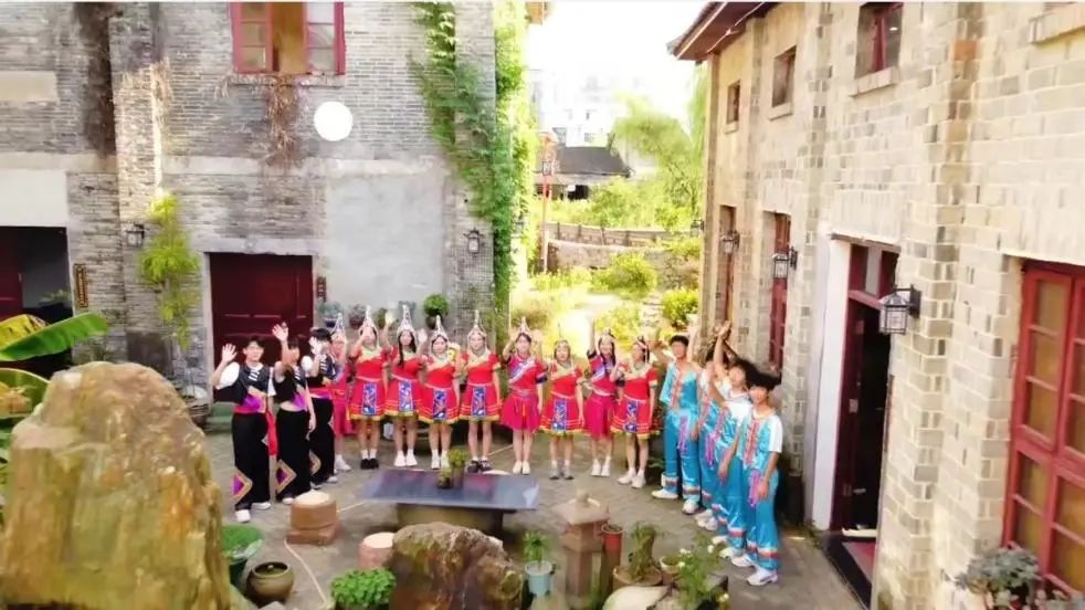 ▲实践队员在九江市湖口县流芳豆文化产业园开展文艺汇演